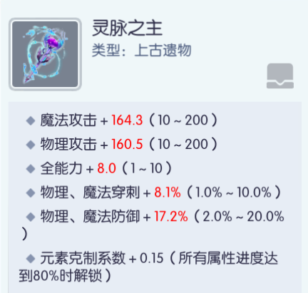 无装备的情况下,各项属性均为无任何Buff情况下、仅佩戴该遗物的站街属性