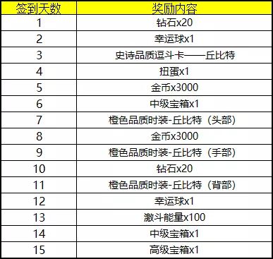 公测期间,同一角色每日登录游戏进行签到,签到3天即领史诗品质逗斗卡——丘比特,签到7天更可领取传说皮肤套装丘比特。