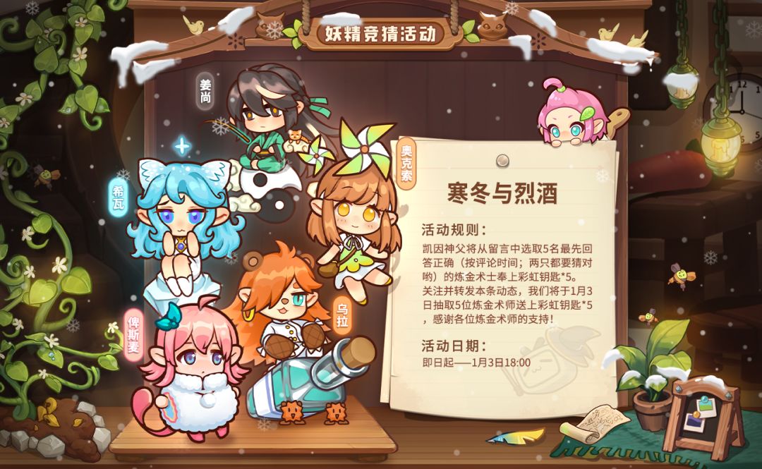留言回复本贴,我们将于1月3日抽取5位炼金术师送上彩虹钥匙*5,感谢各位炼金术师的支持!