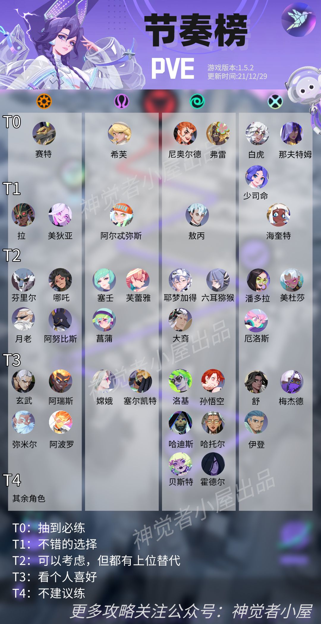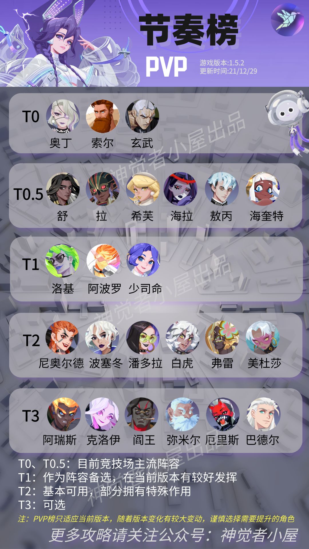 本榜单英雄基于游戏1.5.2版本,分为PVP和PVE两版: