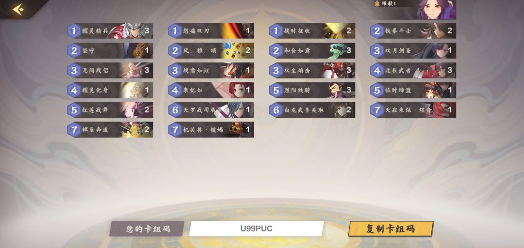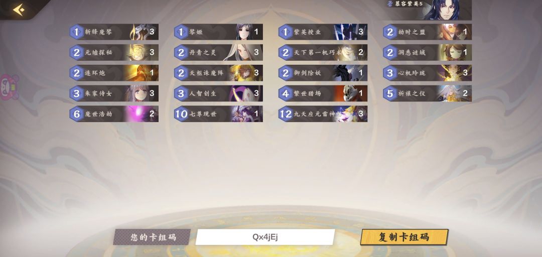 圣俑雷:组件一齐就是史诗级伤害,可以只要一个圣俑启动,但不能只要一个诛魔启动,慢速一般情况扛不住,像那种展开慢的卡组,部署之间无连携能力的部署对你造成不了任何威胁,打快攻排序好一样是碾压对面,琴的解场能力还是不容小觑的。