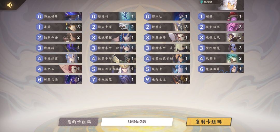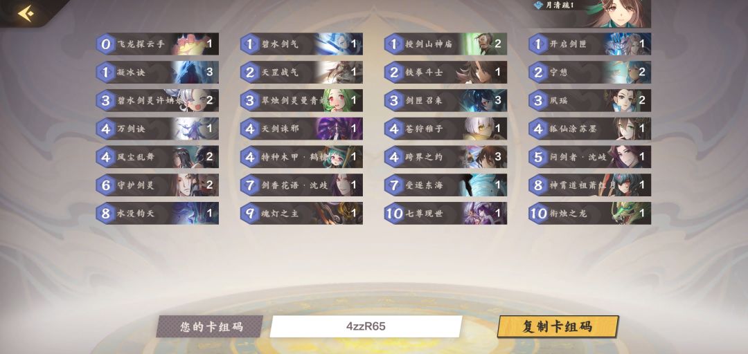 红月水:主将可替换洛轻尘,开局找跨界及凝冰决,前期不卡手的情况完全不用慌,只需要等待一个合适的时机一两回合就可斩杀对面,起手红月依然可以找抗快牌撑到直接下,清场回血样样精通,剑来加夙瑶更是恐怖如斯。