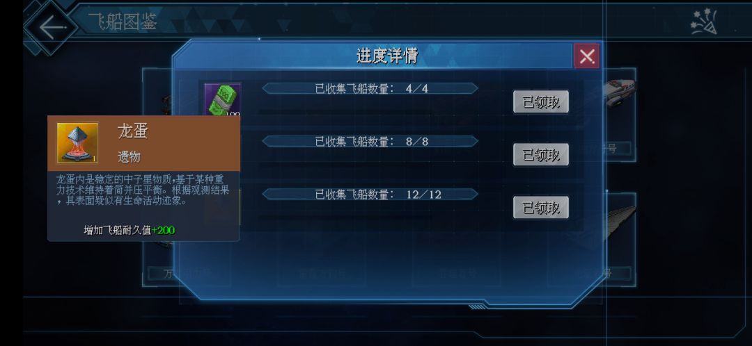 12,飞船图鉴的进度奖励中,收集12艘飞船送的遗迹还是比较重要的,后期可以适当屯些绿钞完成这个奖励。如果一直在公会领红包,甚至有买月卡,买主线战令这些,长久下来绿钞的压力并不会太大。