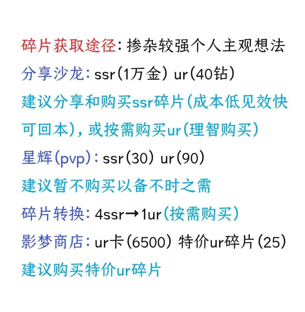 星石、影像及UR碎片获取途径一览