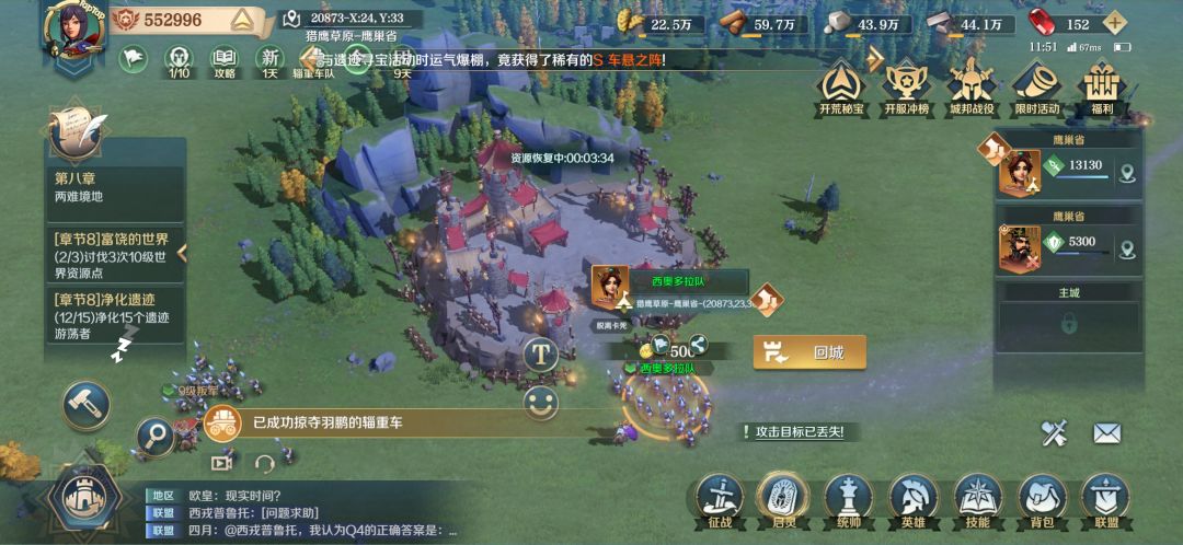 4.多推主线,迷雾全开,实在体力少了又不想刷叛军,可以去其他区域战斗,刷战功也有经验。