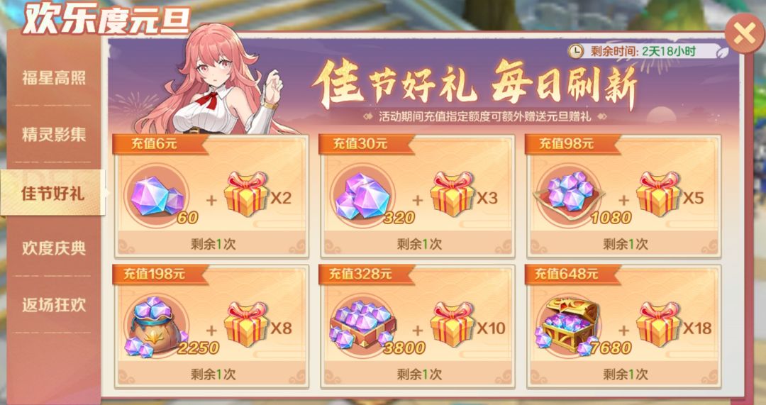 活动期间充值制定额度可额外赠送元旦赠礼。佳节好礼,每日刷新,过节快来和米娜一起血拼吧~