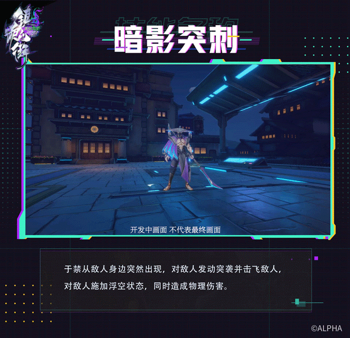 于禁头戴浪人斗笠,从敌人身边突然出现,对敌人发动突袭并击飞敌人,对敌人施加浮空状态,同时造成物理伤害。