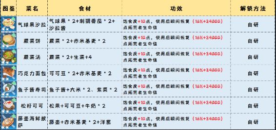 幻塔食物烹饪菜谱大全,附带各种食物BUFF详解