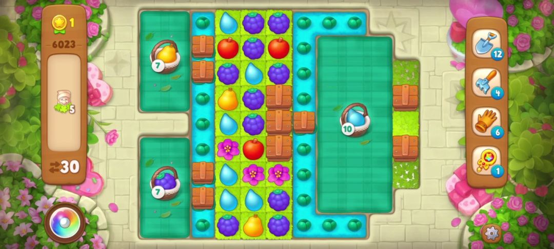 ①观察开局:箱子和睡莲把关卡分成了3部分,还有野餐布挡住小矮人,所以我们首先要把野餐布清除。注意开局送了一个炸/弹不要忘了合成!有利于清障碍~