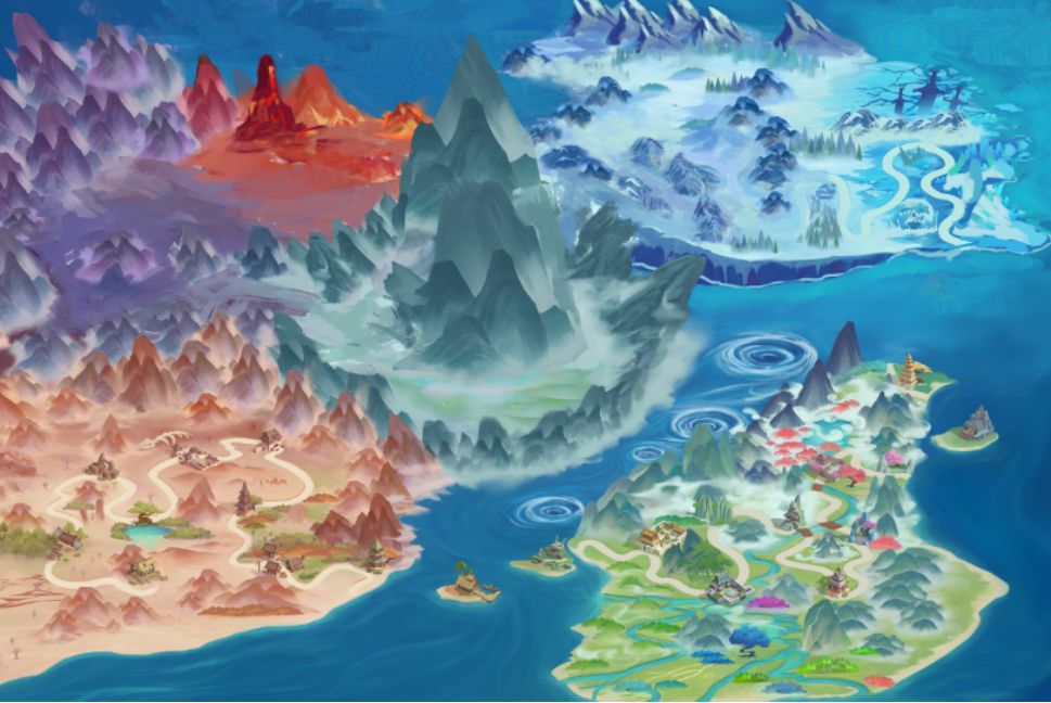北洲:放眼望去一片白雪皑皑,除了平原就是当地特有的冰树林,传说这里是雪麒麟栖息之地,但从来没有人见过。