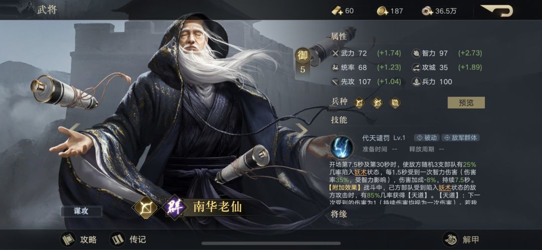 张角的技能处于妖术状态下的敌人会被控制。南华老仙也是可以施加妖术状态。于吉就是受到攻击以后,攻击的人会受到妖术状态。至于为什么没有左慈,因为需要肉盾吧。于吉相当于王者里的半肉,还能回血,和扁鹊一样,于禁就是白起,南华老仙就是名刀😂 (左慈控制周瑜,辅助很强)