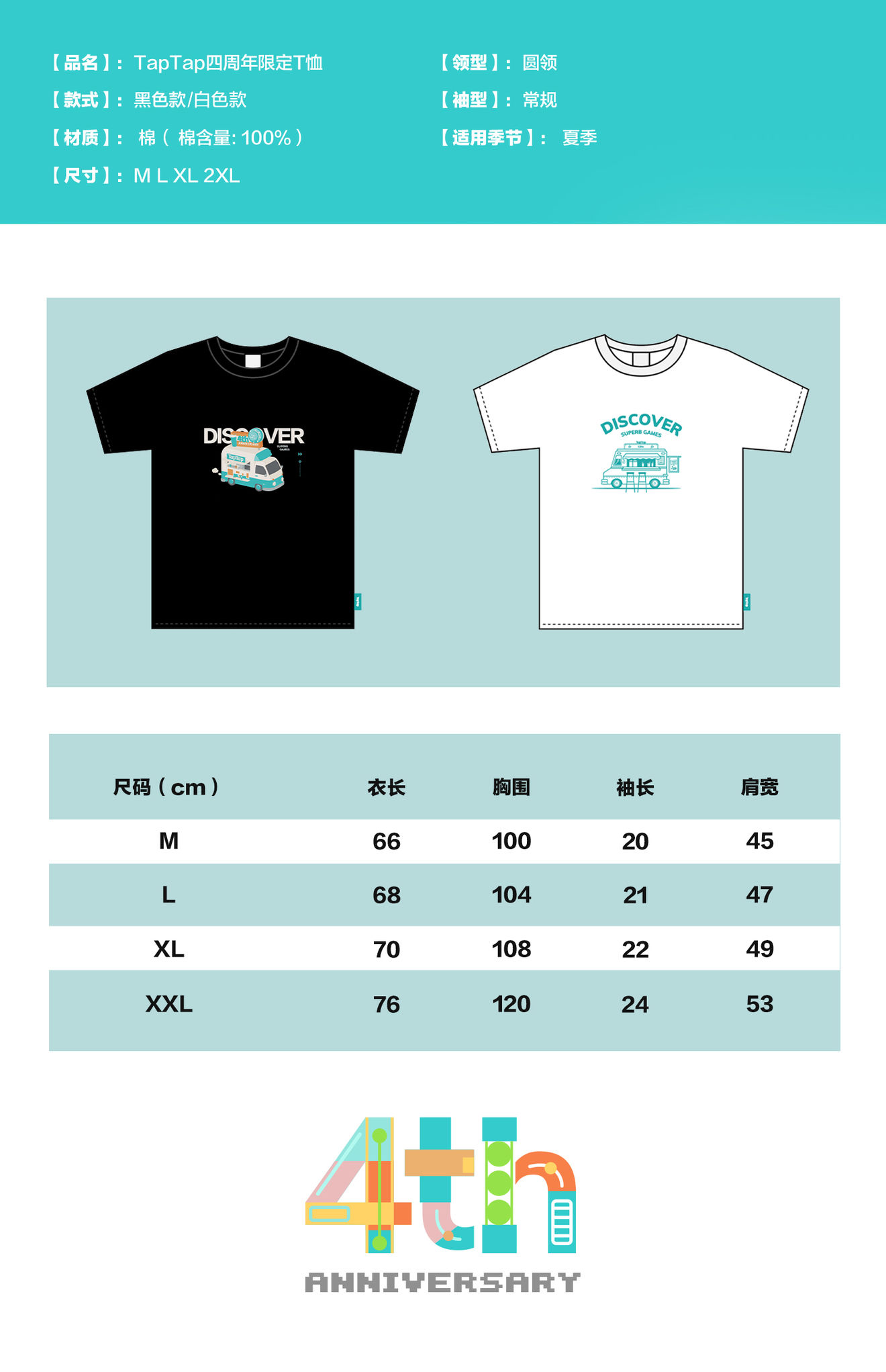 ◆ TapTap四周年纪念T恤×5(黑白尺寸任选)