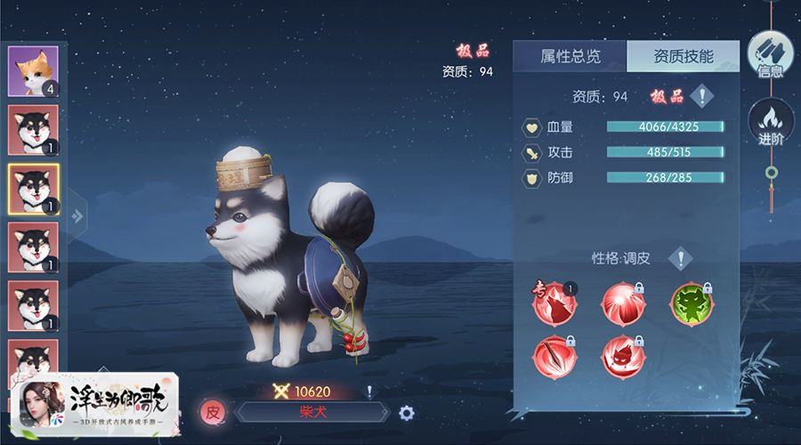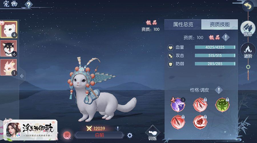 《浮世为卿歌》中宠物的天赋有着诸多种类,分为:勇猛、敏捷等等,其资质也都不尽相同,分为:普通、稀少、珍贵、极品。游戏中宠物们都各有所长,能够成为阁下在行走浮世之路时的一大助力,阁下可以在宠物养成界面,喂养自己的宠物,当亲密值满足了所需进度还可以将宠物进阶,让每位玩家都能自由培养自己的最佳拍档。