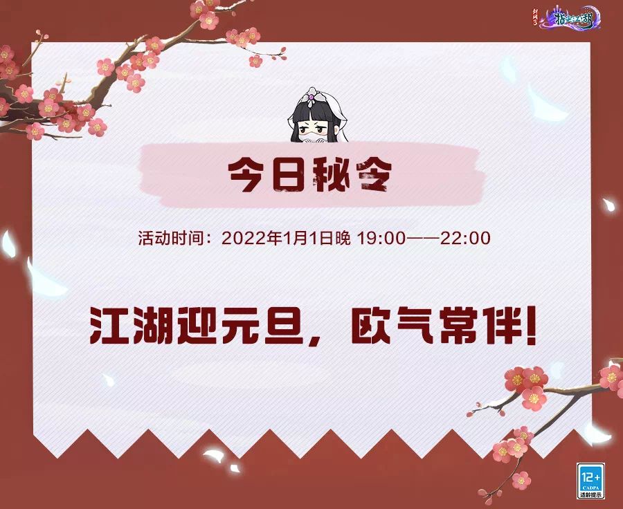 少侠少侠!元旦快乐呀~来和小邪子打个招呼吧!还有线下品鉴会预告惊喜发布噢~跨年贺图和秘令好礼,少侠们也可千万不要错过哟~(^-^)ノ~