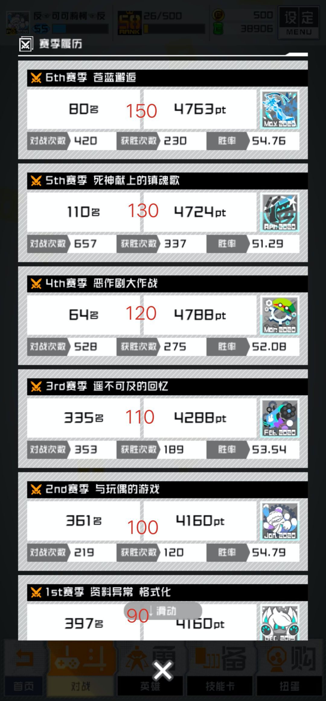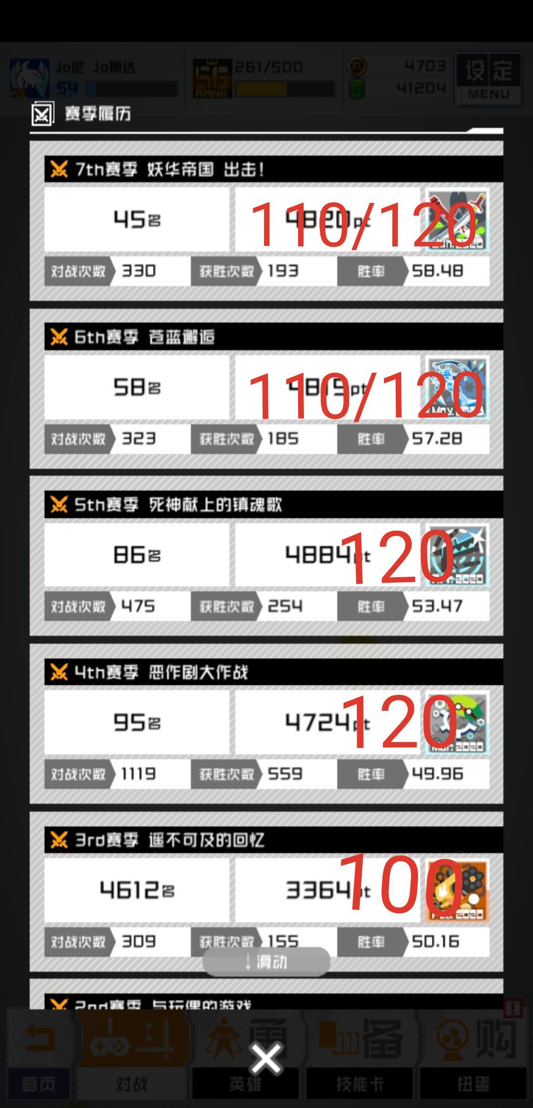 有人对于【UR120卡等单排200】比较质疑,我这里补个战绩履历图,图里红字是卡等,下图依次是