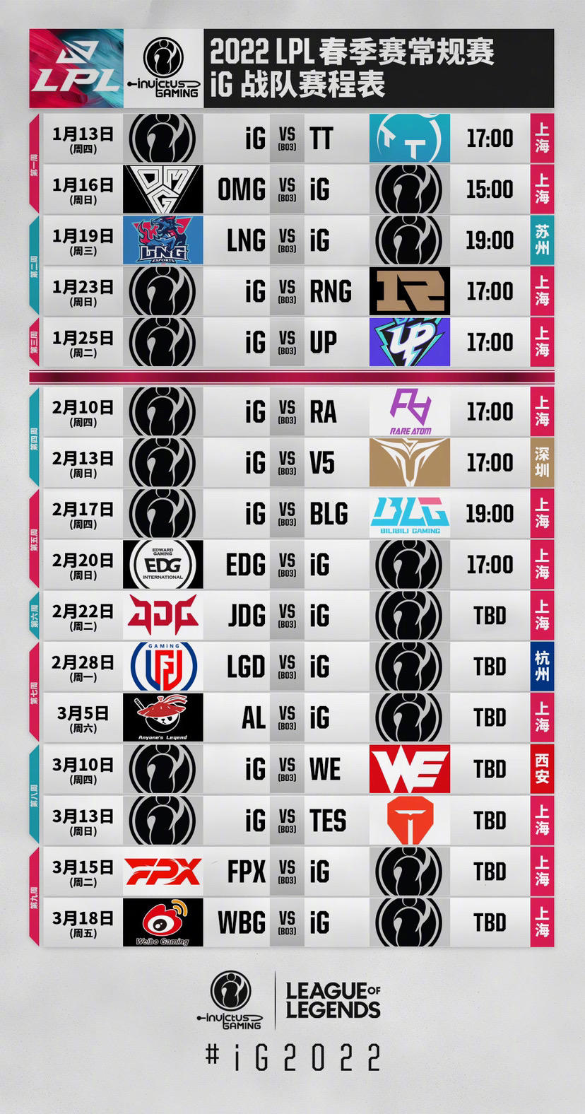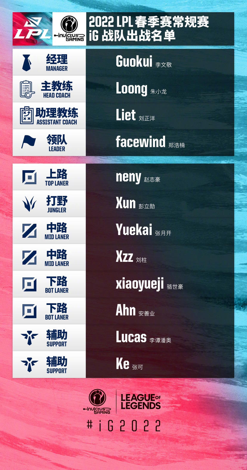 【2022LPL春季赛】iG公布2022春季赛大名单