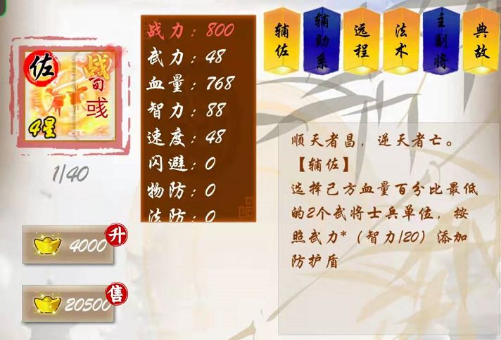 看上图,辅佐职业是按照武力给友方添加防护盾的,荀彧虽然武力并不高,但其智力高达88,(智力/20)瞬间把实际的武力效果提升了4.5倍。相当于荀彧这一攻击的伤害量高达48*4.5,将近200,而且还是友方两个单位。