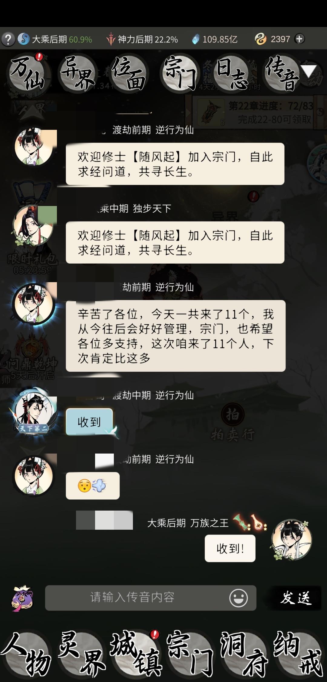 在当时八荒刚开时,我不知道那是什么,只知道可以竞猜拿奖,打赢了整个位面得奖。这是我对八荒的第一印象。 后来我的一位游戏好友拉我进了他们宗门的群(也是我们位面最强宗门)我当时似乎是打开了新世界。