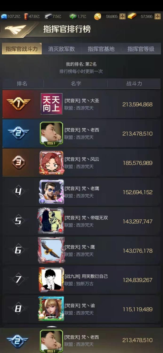梵丶老西:目前2.1亿战力,战力排行榜第二。我自己提升实力很简单,紧跟游戏活动,另外找专业的指挥。对于新手玩家的话,建议大家好好研究,别上头。