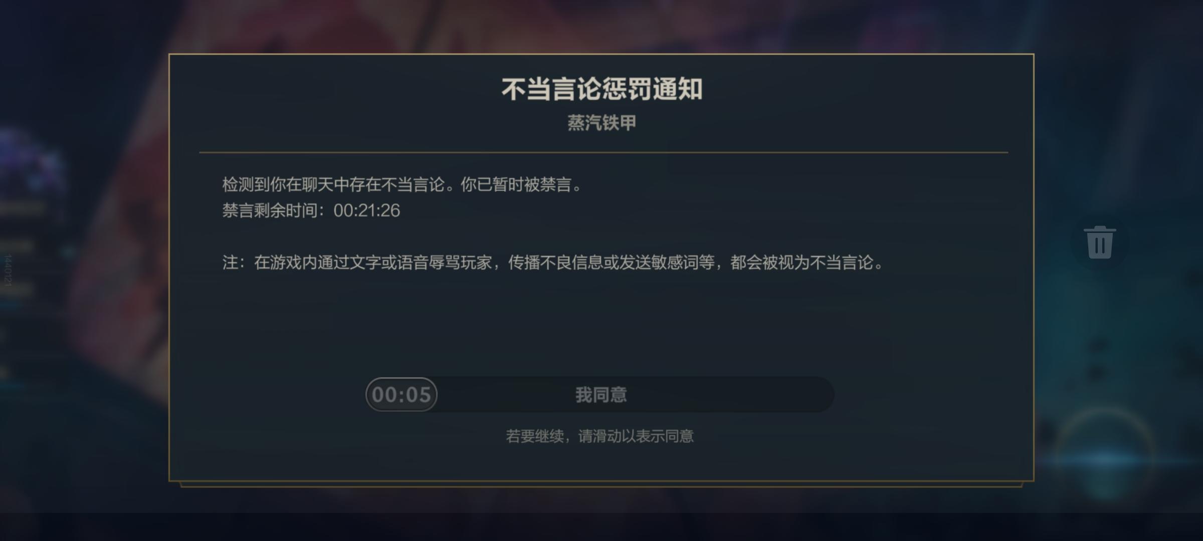 遇到一个神奇鳄鱼,自己玩的菜,对面诺手都说他蠢,我和队友都没说啥,而且我和狐狸帮了他几次,拿了个人头后,就不知道自己姓什么了,来了句带不动,把我气的。血压直接上来了,喷了他几句,官方直接给我禁言了,完事他还带劲了,开始讲人生哲理,我日?就这种人,tmd配赢?我告诉你这处罚老子不同意,不同意。mmp
