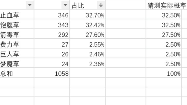 刚开始以为箭毒和止血草饱腹草概率一样