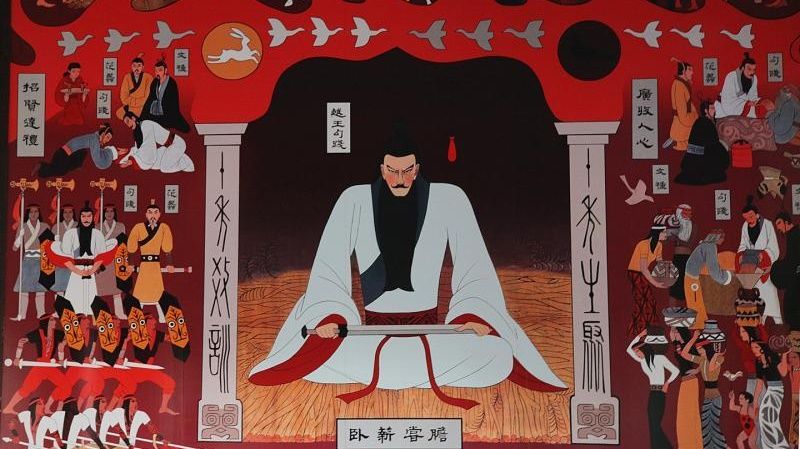 这幅对联相信大家都很熟悉,下联的主人公正是春秋时期的越王勾践,勾践卧薪尝胆,消灭吴国,两千多年来一直为人津津乐道。
