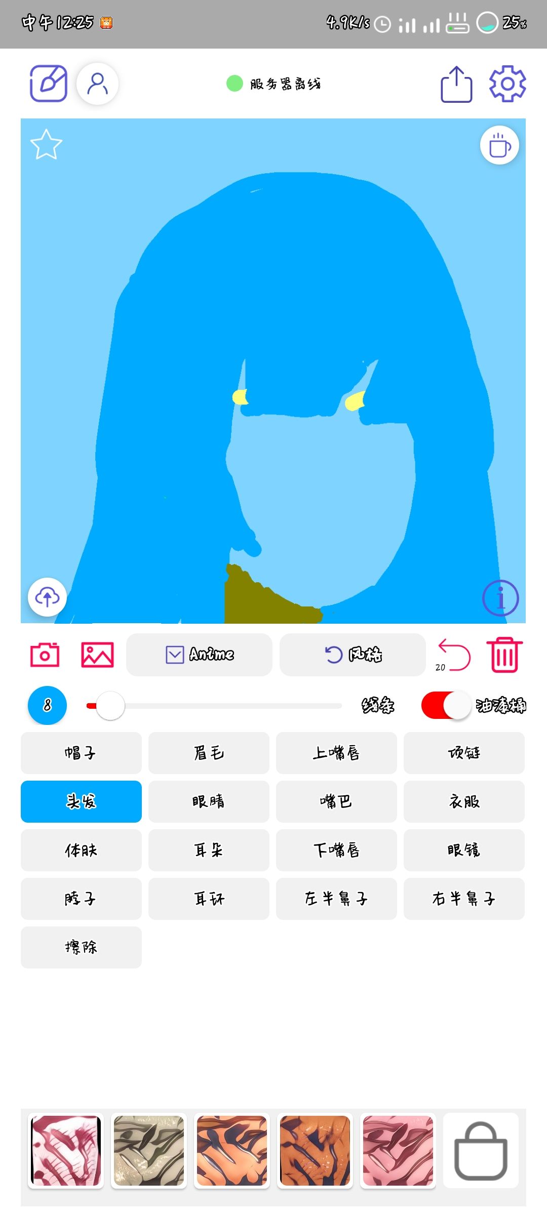 然后画头发眉毛和脖子,头发尽量随意点画,只要给脸部留出位置就不会画崩。(实在想象不到好的头发就只好对照别人的图片或者导入图片进行修改了)