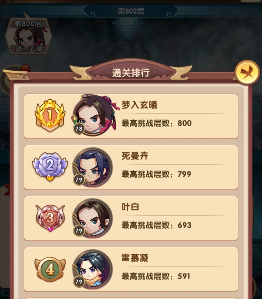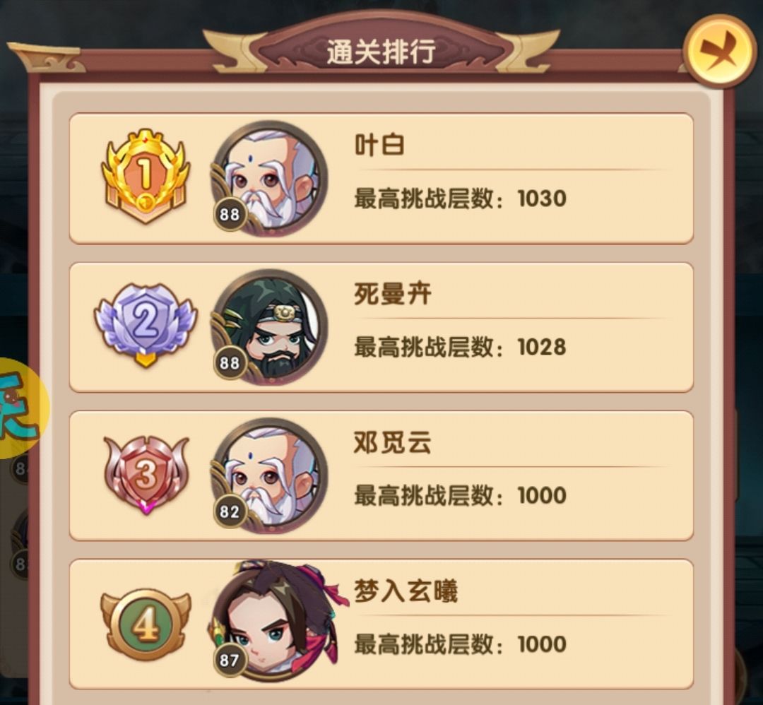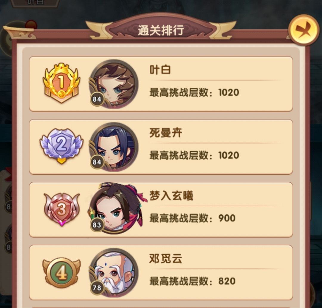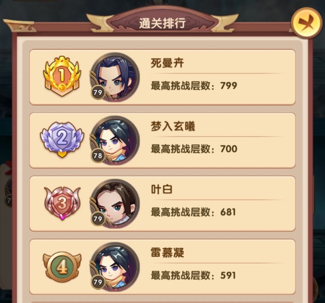 排行第四的目前387层,战力289w,他的战力是高于我的,但阵容选择问题,爬塔效率并不高