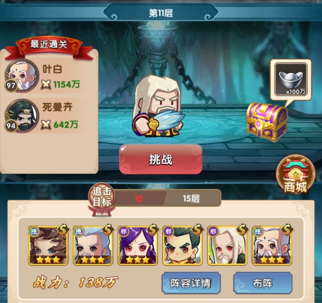1000层,战力341w,由于强迫症把阵容的红星都拉上来了……
