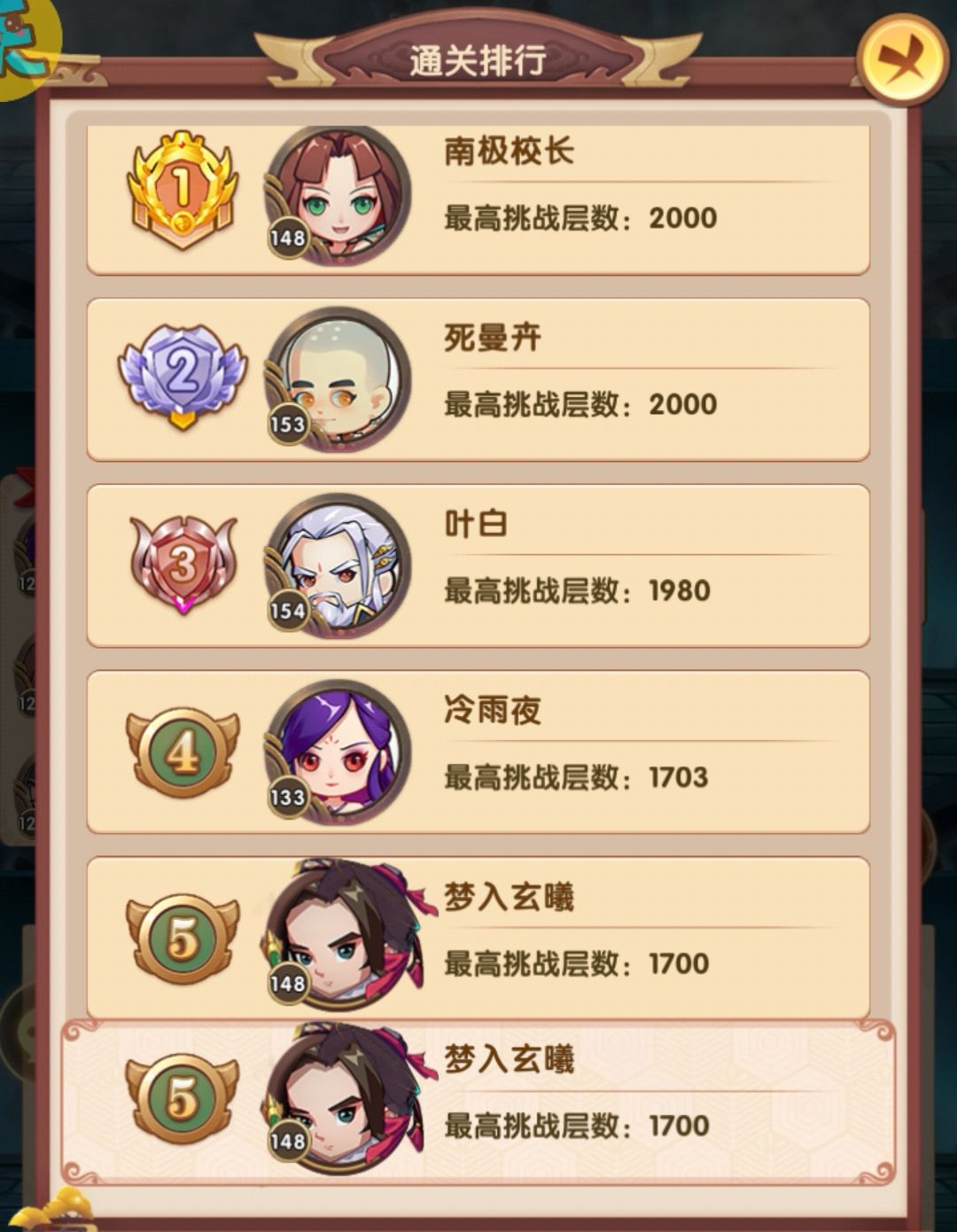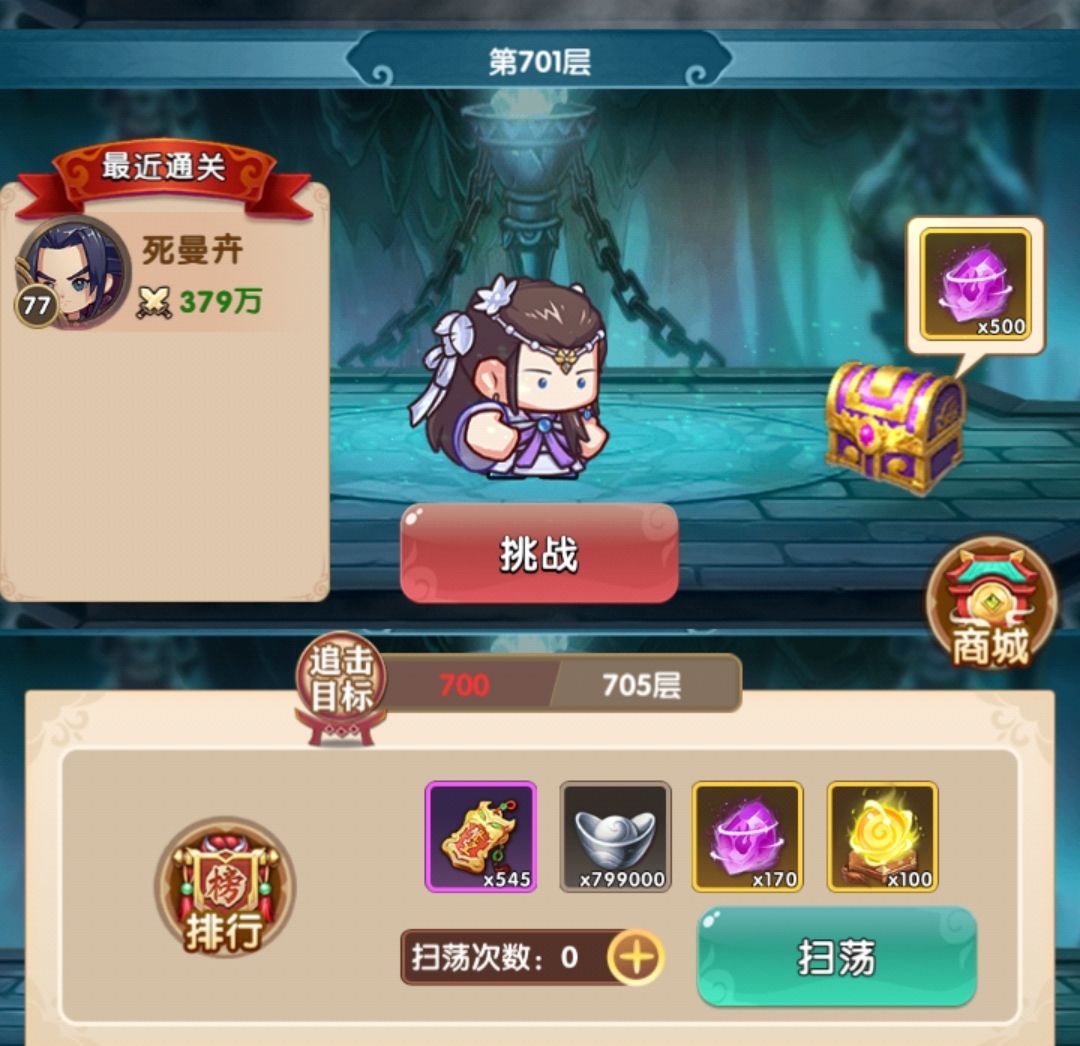 第七天起来继续爬,印证了昨天的设想,这个阵容和配置在600层没压力,果断爬到了700,排名升到第二