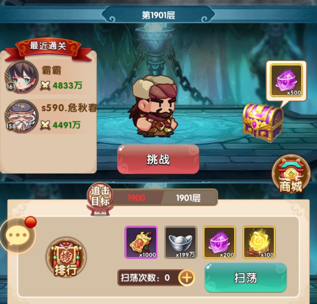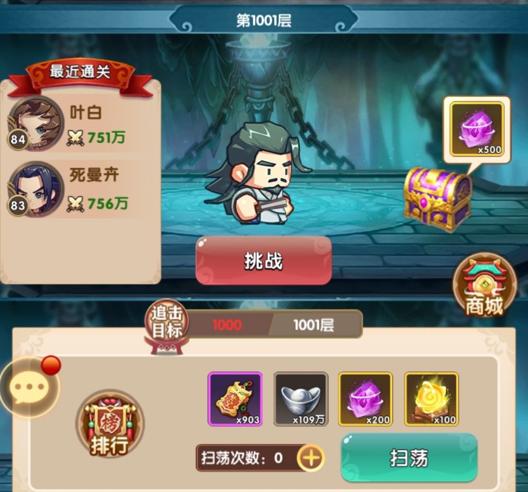 首先1000层以后每层的难度会有个很大的提升,不会像之前一样一次过20-30层的样子,每5层的奖励也就变成逐层奖励,主要奖励是拜访券