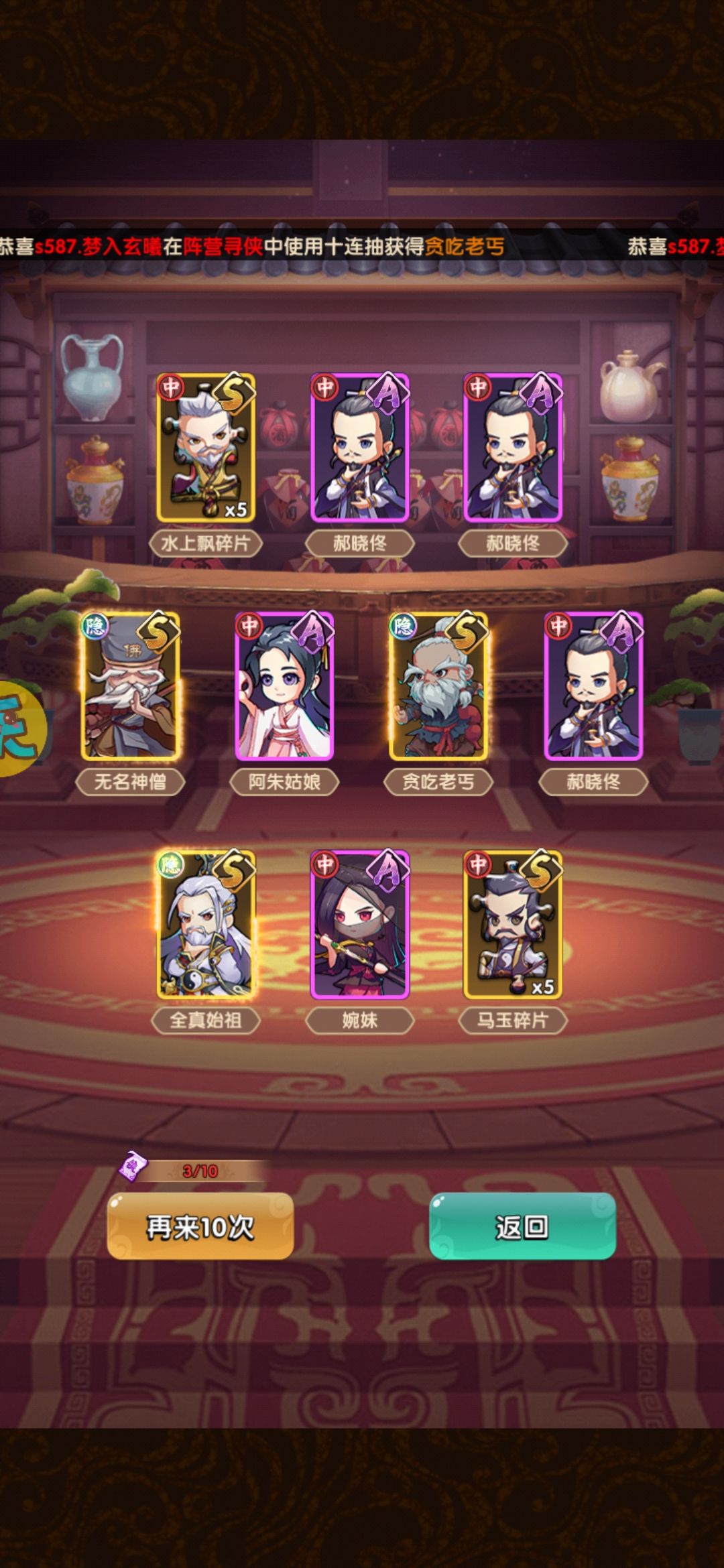 奖励除了一些资源外,还有阵容S碎片,每天的上限是10层,大概40个碎片