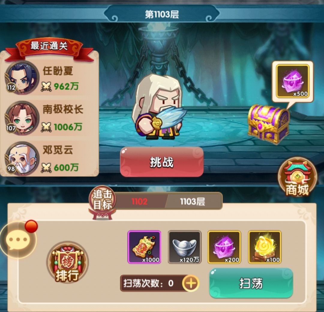 1100层,其实1000层后,最缺的是狗粮,所以没有刻意去爬塔,毕竟爬塔给的奖励也不是那么急迫