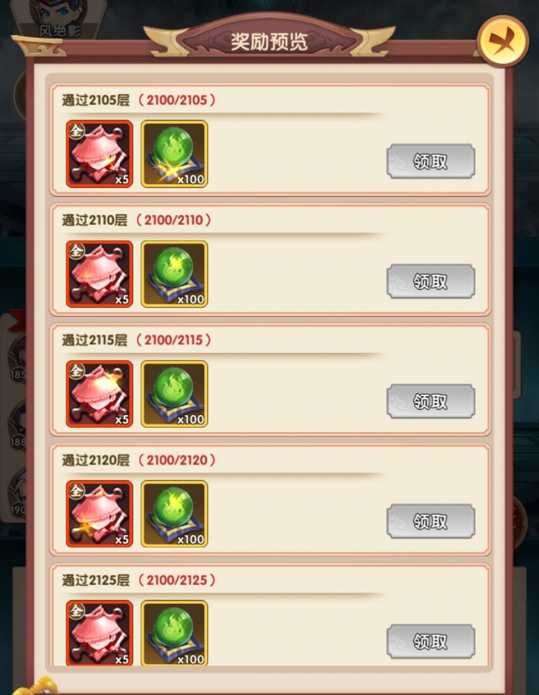 2000以上如果不氪确实不好打,每5层收益5个碎片,吸引力也不大,所以拖了很久,但是既然过了2100还是记录下