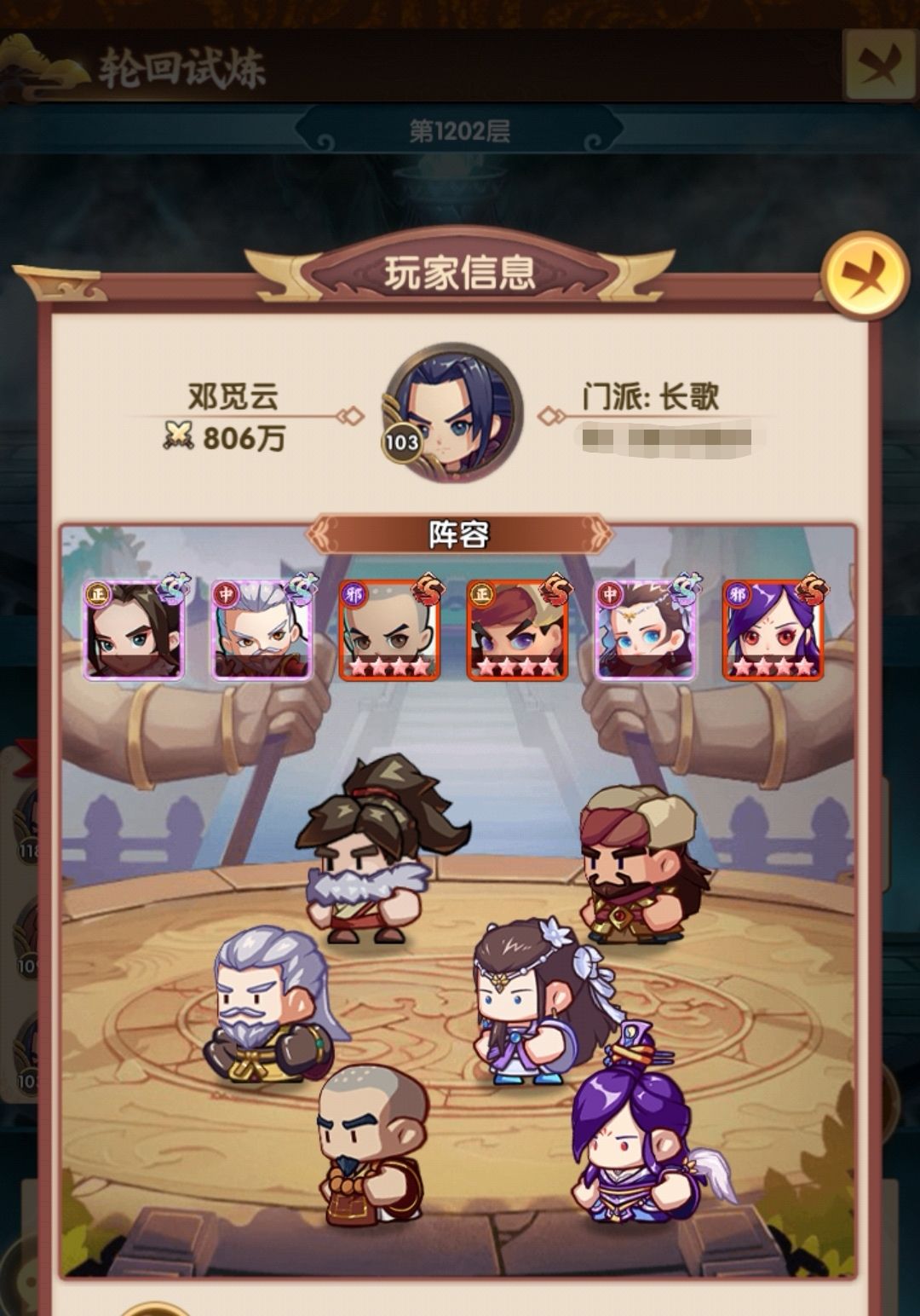 顺带提下,武学这块没怎么搞,峨眉和武当要周五到周日才能打,由于错过了周日,所以现在随便带的,如果有峨眉可能效率会更高些,大家800层再见