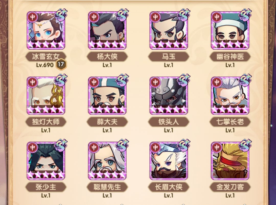 阵容方面没太大变化,把姑姑和令狐升到了红五,张五侠补到了红三,靖哥哥也升到了红三