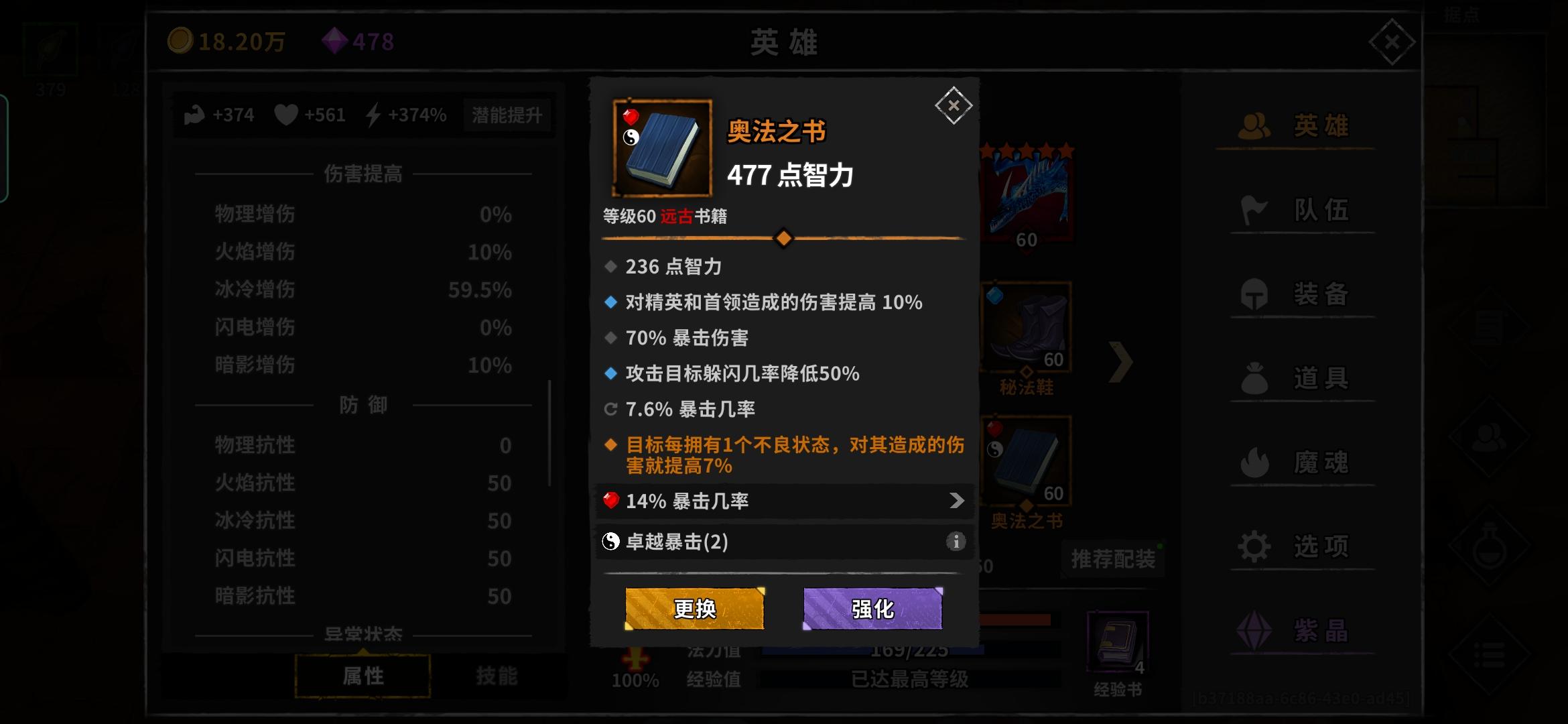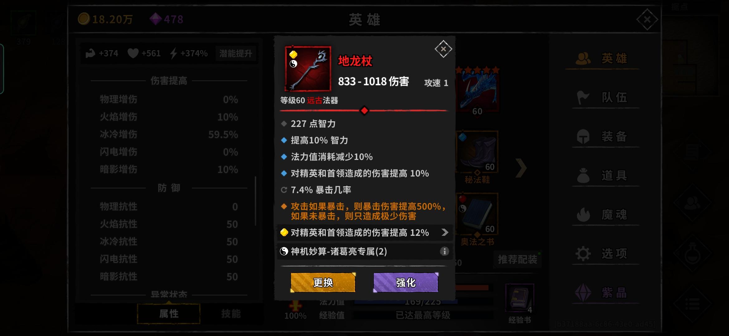 目前差一个套装+100爆伤,宝石可以加点智力,还有潜能,目前打木桩第一次红字1700左右,第二回合2300左右。看大佬伤害都是两三万,我才1.8
