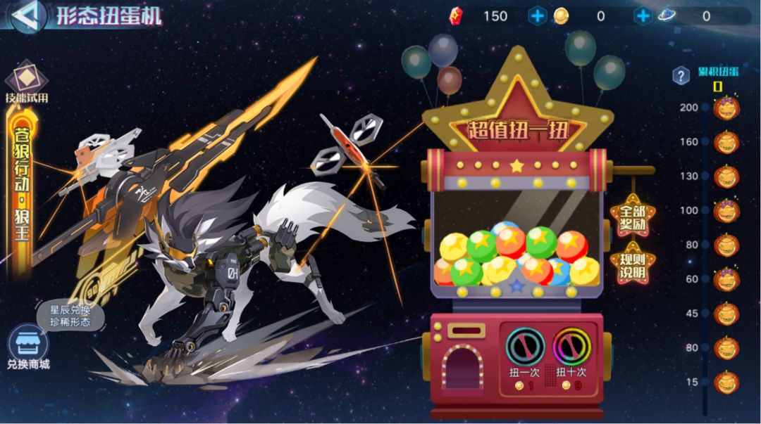 活动内容:形态扭蛋机累计扭蛋次数重置!扭蛋累积到达一定次数,便可获得扭蛋币和星辰等奖励!