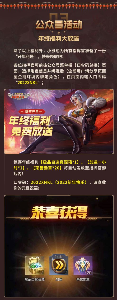 2022《红警OL》元旦活动【新年连线】和【祈愿水晶】正在火热进行中,【公众号口令码】福利放送也千万不要错,兑换截止时间为1月7日24:00 ~