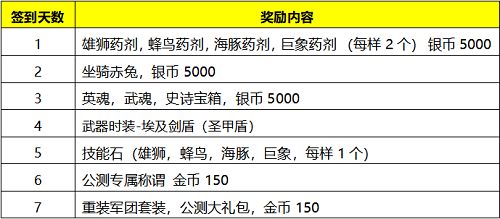 除以上公测福利外,完成每日签到还可获得如下奖励(仅对本次测试生效):