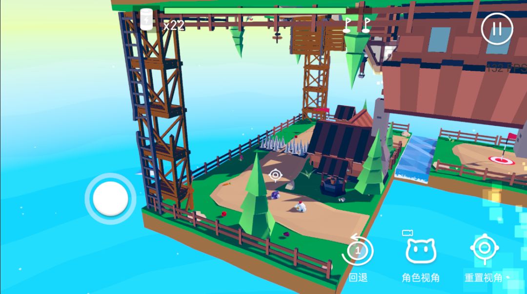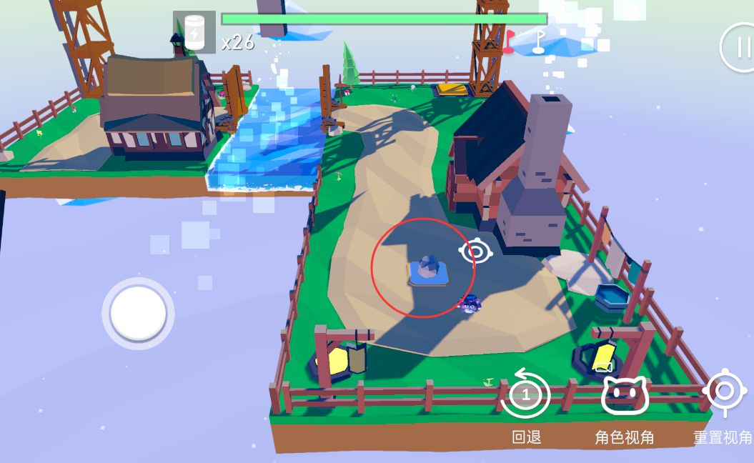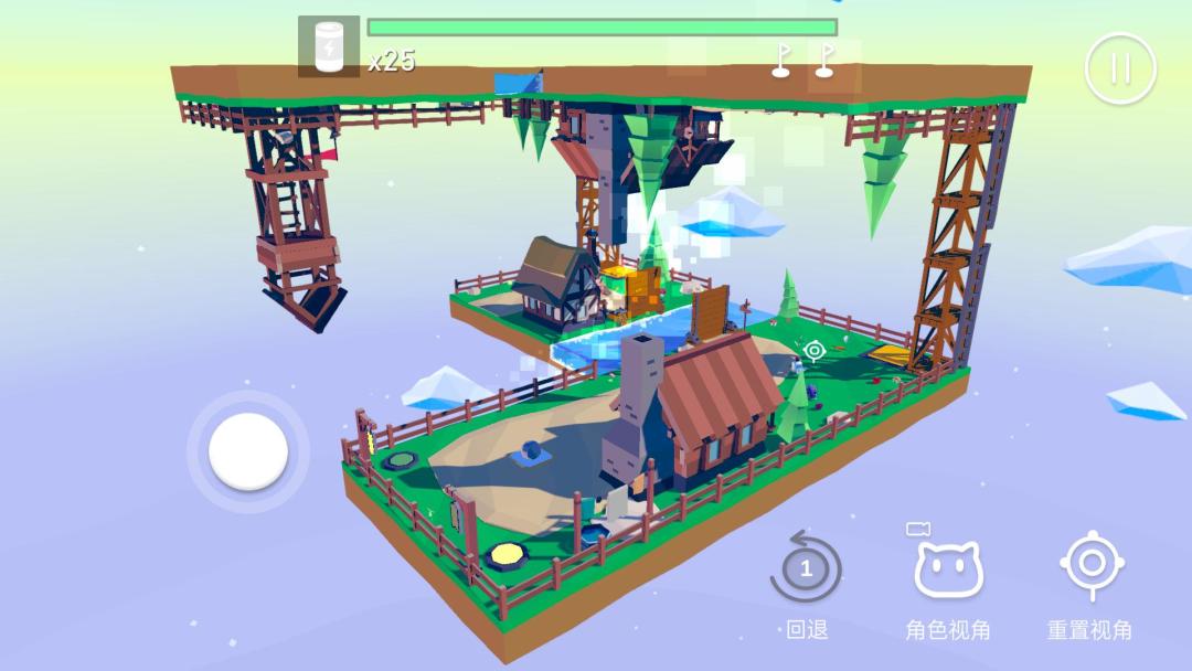 现在的问题是怎么到下平面的河对面,通过观察可以发现,需要踩踏下平面的两个按压机关,这样就能把桥连上!