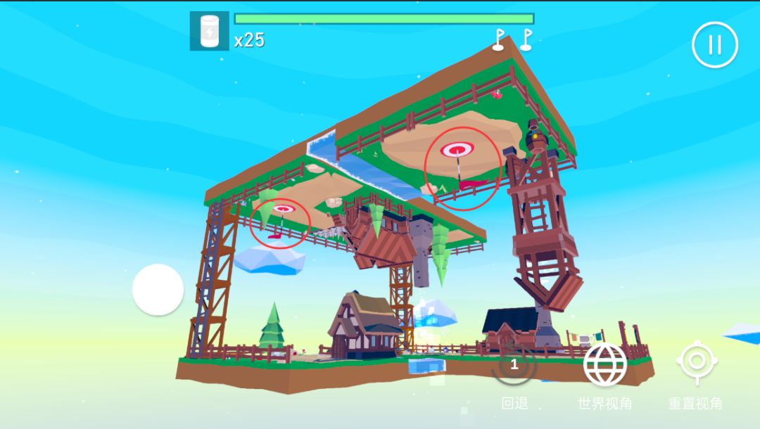 如何才能从下平面到上平面呢?本关卡首次引入了重力切换的概念,通过触发机关,切换上下平面重叠空间的引力大小,如图所示,两个机关,一上一下,可以重复触发。