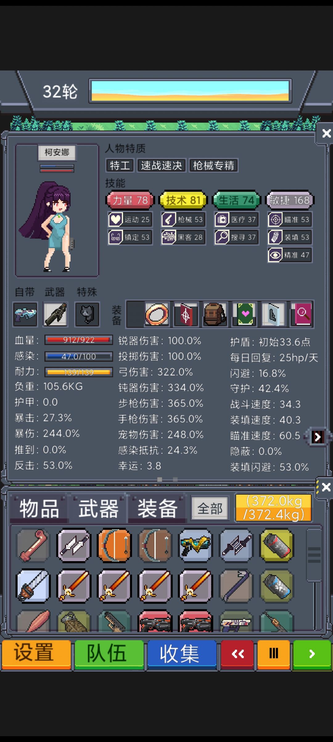 以后基本不用看图,没事看看人物状态,感染不高,有装备就行。