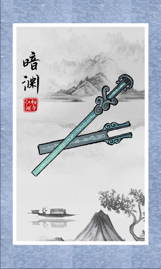 暗渊:造型最为独特的十八名剑之一,重剑无锋,剑身刻有极为繁杂的纹路,整体成墨青色。此剑原本是一把充满儒雅气息的儒雅之剑。为崆峒派掌门所持有之物,百年前崆峒遭遇灭门大劫,此剑被奉天教一位护法所得并更名暗渊,因长期受到邪道功法的影响,此剑从此染上了浓厚的戾气和血气,后来重回到崆峒派手中之后,数代掌门以正道功法洗礼,终于让这把剑重归铅华,只是这把剑身上那一丝莫名的邪异气息却再也洗不掉了。