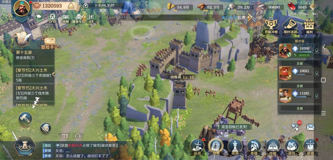重点注意:今天到第十五章有个开训练营的任务千万别去做,会影响你刷等级进度,导致二三队拖节奏 ,45体力刷一次训练营的经验不如你打三次13级主城叛军经验多。可以等十五章全部任务完成最后开训练营