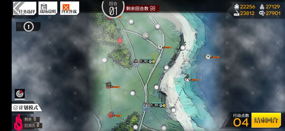 第三回合走到如图所示位置,和r93换位之后占领机场,剩两步没必要用,直接结束回合
