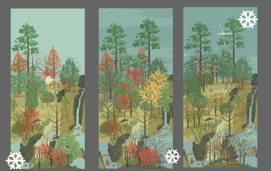 ‼注意⚠是树的布局变化,不是季节变化!(季节可以变化,但不是重点