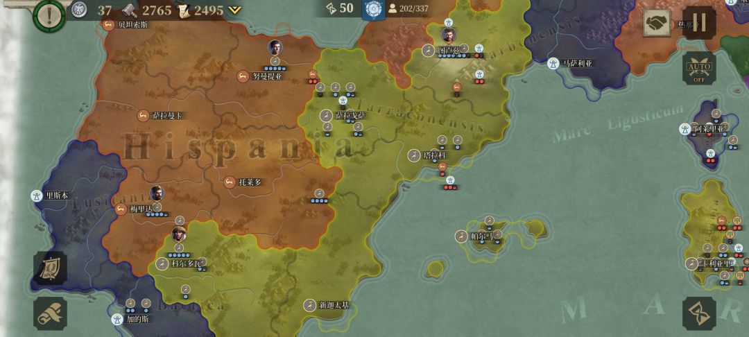 一星国,普兰尼,共计耗时68回合、任命8名将领、占领51座城市中心、剩98支军团。