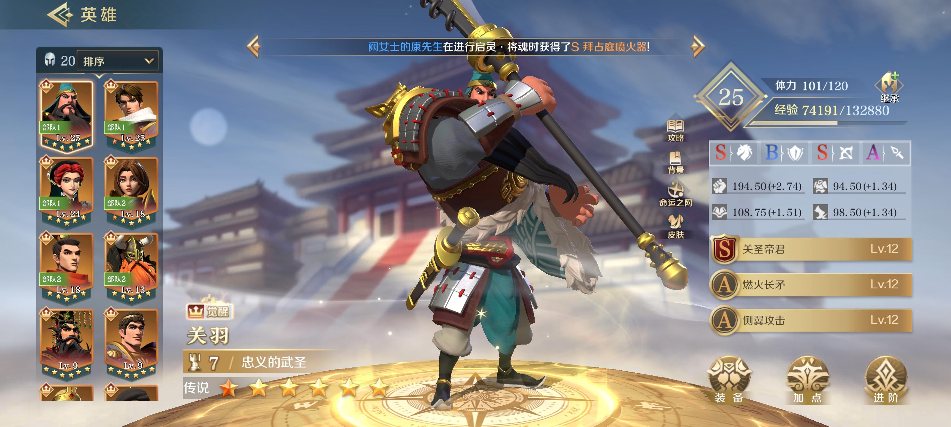想问一下 该怎么配队 主队关羽队没有西奥 副队的 备选有君坦和嬴政 但是不知道怎么搭配 技能也不多