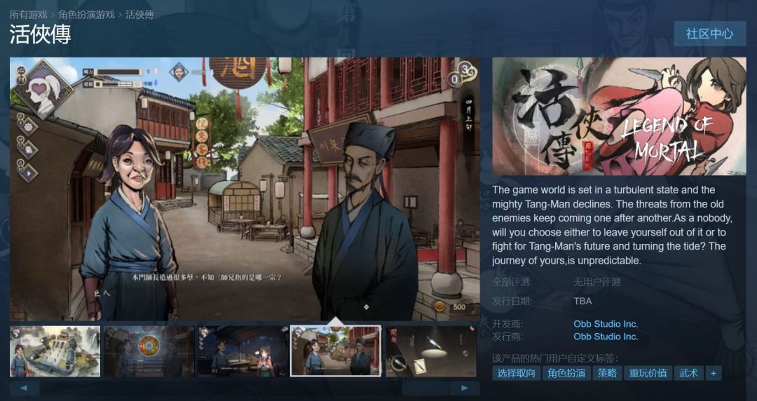 由独立游戏研发团队原始鸟熊(Obb Studio)开发的PC单机武侠RPG游戏《活侠传》上架Steam,发售日期待定,目前仅支持繁体中文。